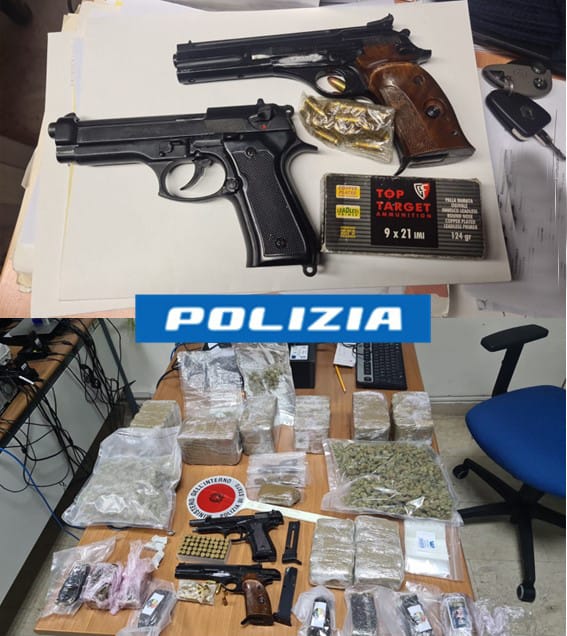 Gli Agenti della Squadra Mobile della Questura di Avellino, a conclusione di una mirata attività info investigativa hanno tratto in arresto in flagranza un 38enne di Avellino, per detenzione ai fini di spaccio di sostanze stupefacenti, del tipo hashish e marijuana, nonché per porto abusivo di armi da fuoco. In particolare l’accurata e costante attività di monitoraggio posta in essere dagli operatori di Polizia nei confronti del soggetto, culminava con esito positivo con l’azione di perquisizione eseguita all’interno del veicolo e dei tre box in disponibilità dello stesso, per poi essere estesa anche all’abitazione di pertinenza. Infatti, nonostante fossero abilmente occultai, si rinvenivano 8 Kg di hashish e circa 600 grammi di marijuana nonché due pistole semiautomatiche di cui una marca Beretta cal. 22, con matricola abrasa e una pistola replica modificata, entrambe corredate di caricatori e perfettamente funzionanti, nonché 67 proiettili e 1180 euro, presumibile provento dell’attività illecita di spaccio. Al termine degli accertamenti di rito il 38enne è stato tratto in arresto. La Procura della Repubblica, notiziata in merito, disponeva di procedere con la convalida del provvedimento, per cui il prevenuto è stato associato presso il complesso penitenziario Antimo Graziano di Avellino. L’ingente quantitativo di droga era destinato alle piazze di spaccio di Avellino e zone limitrofe.