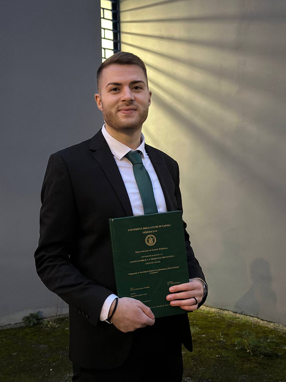 Il dott. Bravoco ha presentato una testi dal titolo ‘Organoids as preclinical models for inflammatory bowel disease treatment’, ossia ‘Gli organoidi come modelli preclinici per il trattamento della malattia intestinale’. Il lavoro, sviluppato sotto la supervisione della prof.ssa Franca di Meglio e del prof. Geppino Falco, responsabile del laboratorio di Biologia Cellulare e Preclinica Oncologica di Biogem, presso il quale il dott. Bravoco ha condotto i propri esperimenti, si concentra sulle malattie infiammatorie croniche intestinali, le quali rappresentano una sfida clinica rilevante per la loro natura cronica e le limitate opzioni terapeutiche. Il dott. Bravoco ha utilizzato una tecnica molto avanzata e innovativa, ossia la generazione di organoidi, definibili come delle “repliche” tridimensionali in miniatura di organi umani, sviluppate in laboratorio a partire da cellule staminali, che simulano la struttura e la funzionalità degli organi di interesse. Nel caso specifico, il dott. Bravoco ha utilizzato degli organoidi intestinali ottenuti sia da soggetti sani sia da soggetti con malattie infiammatorie croniche intestinali. Questi organoidi hanno riprodotto fedelmente marcatori specifici e profili infiammatori. I risultati ottenuti validano gli organoidi come piattaforme affidabili per lo studio delle malattie infiammatorie croniche e identificano un composto derivato dall’olio d’oliva come promettente candidato terapeutico anti-infiammatorio. Il lavoro del dott. Bravoco apre diverse prospettive sul piano clinico, inclusa la possibilità di utilizzare gli organoidi derivati da pazienti per fornire raccomandazioni terapeutiche personalizzate.