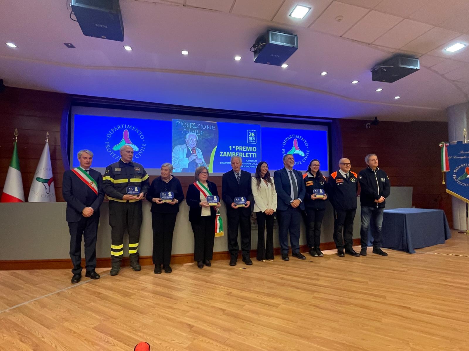 Per la sezione Scienza e tecnica, il premio è stato attribuito a Franco Barberi, tra i maggiori esperti a livello mondiale nel campo delle scienze geofisiche e vulcanologiche, che ha contribuito in modo determinante ad integrare il sapere e la conoscenza scientifica nei processi decisionali e operativi della protezione civile italiana.  Nella sezione Volontariato sono stati premiati Franca Rampi, protagonista storica del percorso di rappresentanza del volontariato di protezione civile, avviato proprio negli anni della costruzione del Servizio Nazionale, e il Corpo Volontari Antincendi Boschivi del Piemonte, esempio avanzato di integrazione e innovazione nel sistema dell’antincendio boschivo, per il progetto di pre-posizionamento di squadre italiane in stretta sinergia con gli operatori del Corpo Nazionale dei Vigili del Fuoco in territori esteri, contribuendo al consolidamento del Meccanismo Unionale di Protezione Civile. Per la sezione Amministrazioni dello Stato viene riconosciuto al Nucleo di Coordinamento delle Opere Provvisionali del Corpo Nazionale dei Vigili del Fuoco, struttura operativa fondamentale del Servizio Nazionale della Protezione Civile, per le attività connesse alle Schede Tecniche delle Opere Provvisionali (STOP) per la messa in sicurezza post-sisma, strumento riconosciuto e apprezzato anche a livello internazionale. Nella sezione Istituzioni, il riconoscimento è andato a Rosa Anna Maria Repole, Sindaco di Sant’Angelo dei Lombardi, figura di riferimento per la propria comunità già all’indomani del distruttivo sisma del 1980 e da sempre impegnata nel rafforzamento della pianificazione e della cultura di protezione civile a livello locale e intercomunale. La cerimonia si è svolta alla presenza del Capo del Dipartimento della Protezione Civile, Fabio Ciciliano, con l'intervento, tramite videomessaggio, del Ministro per la Protezione Civile e le Politiche del Mare, Nello Musumeci, e con la partecipazione di numerose figure istituzionali, amici e profondi conoscitori dell’opera di Giuseppe Zamberletti, oltre ai tanti protagonisti del Servizio Nazionale della Protezione Civile. Con questo premio si intende ricordare e onorare Giuseppe Zamberletti, ma anche rinnovare l’impegno per una protezione civile fondata sulla collaborazione tra istituzioni e cittadini, sulla conoscenza e consapevolezza dei rischi e sulla capacità di fare sistema. Un’eredità che continua a vivere nelle donne e negli uomini che, con competenza e spirito di servizio, operano per la tutela e la sicurezza delle comunità.