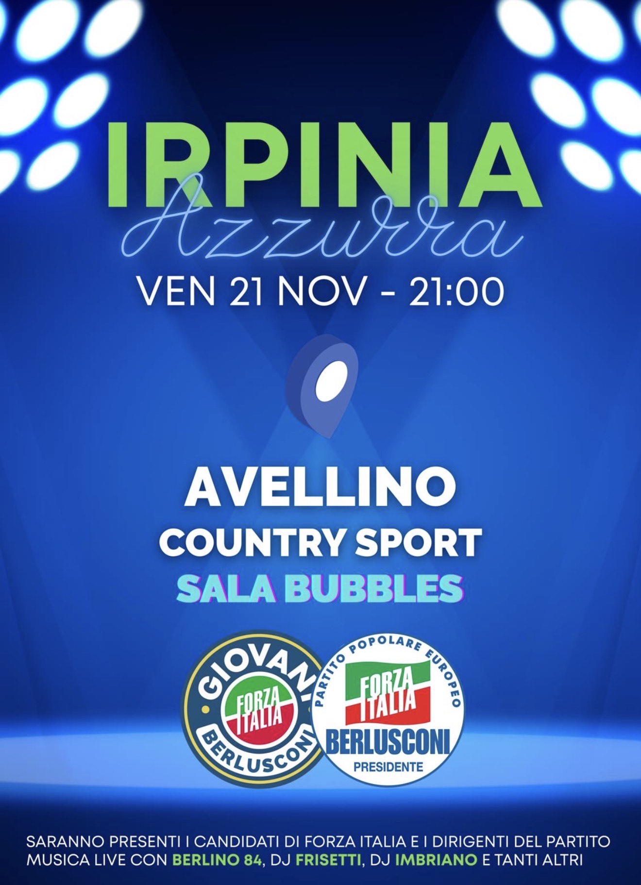 Domani, 21 novembre alle ore 21:00, presso il Country Sport di Avellino, si terrà l’evento di chiusura della campagna elettorale regionale di Forza Italia, con la presenza del Segretario provinciale, Angelo Antonio D’Agostino, e del segretario regionale e capo delegazione al Parlamento Europeo, Fulvio Martusciello.